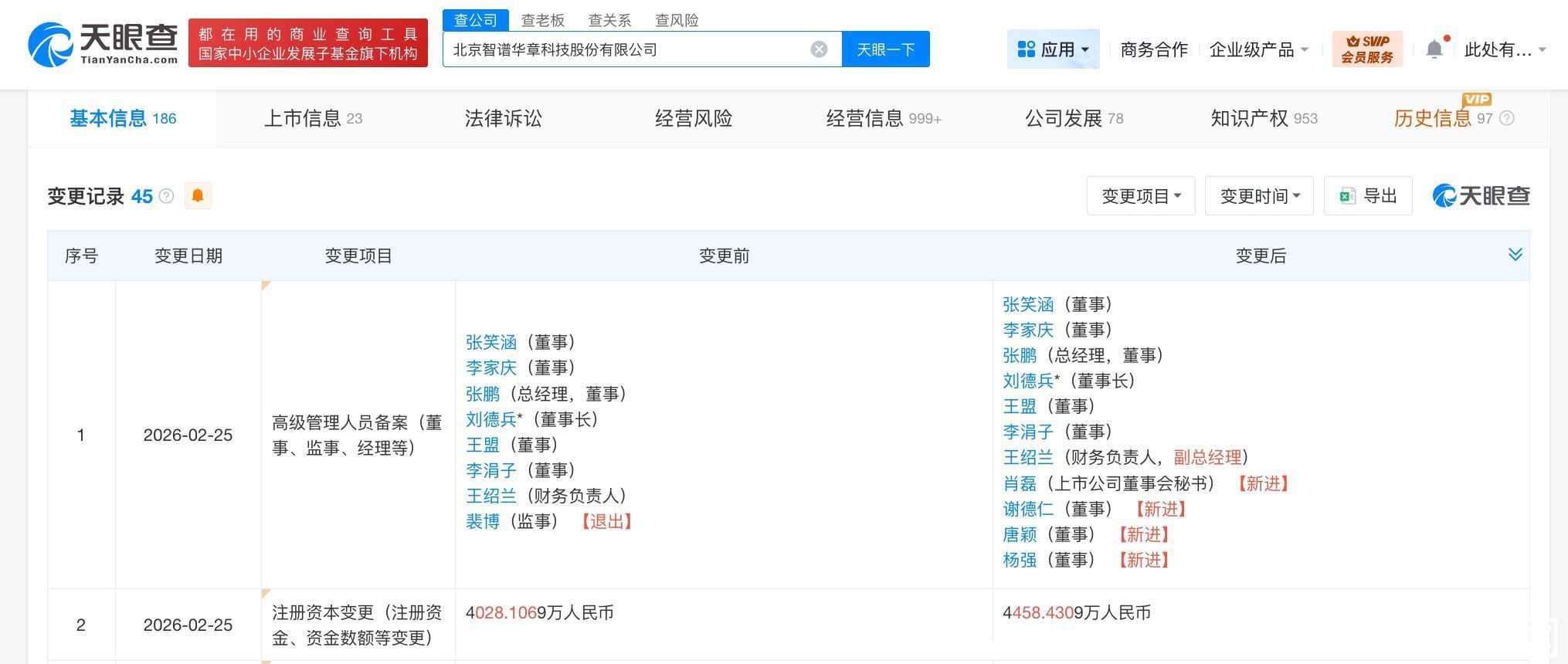 天眼查App显示,近日,智谱AI关联公司北京智谱华章科技股份有限公司发生工商变更,注册资本由约4028.1万人民币增至约4458.4万人民币,增幅约11%,同时,多位高管发生变更。